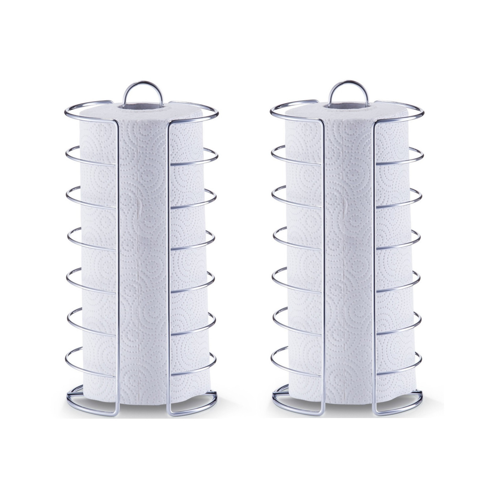 2x Zilveren metalen keukenrolhouders rond half dicht 15 x 30 cm