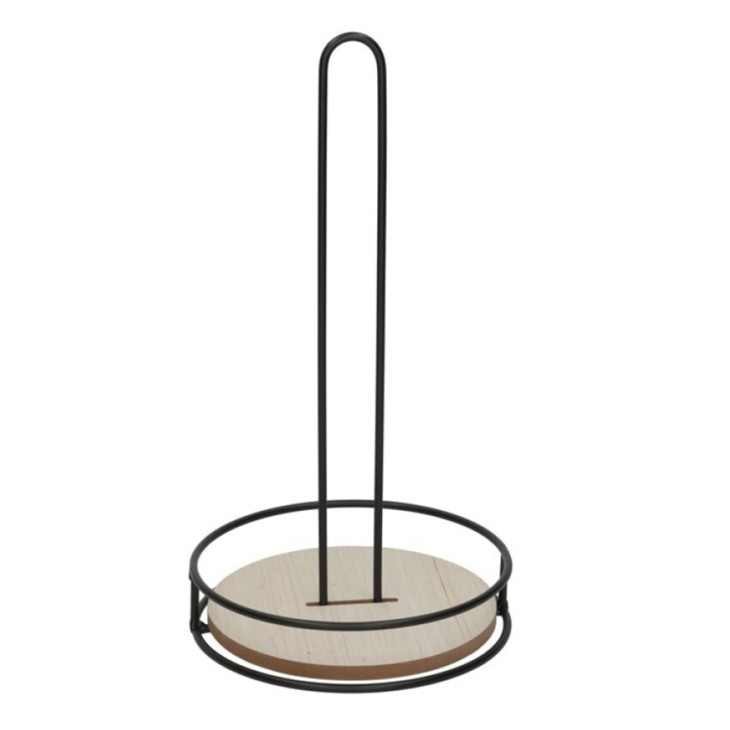 Keukenrolhouder van Gerimport. Deze stijlvolle keukenrolhouder combineert een natuurlijke houten basis met een moderne, zwarte stalen staaf. Het ontwerp is zowel functioneel als decoratief en past moeiteloos in elke keukenstijl, van landelijk tot industrieel. De houten onderkant zorgt voor een stevige, stabiele basis, terwijl de stalen houder ervoor zorgt dat je keukenrol netjes op zijn plek blijft ? klaar voor gebruik wanneer je het nodig hebt.