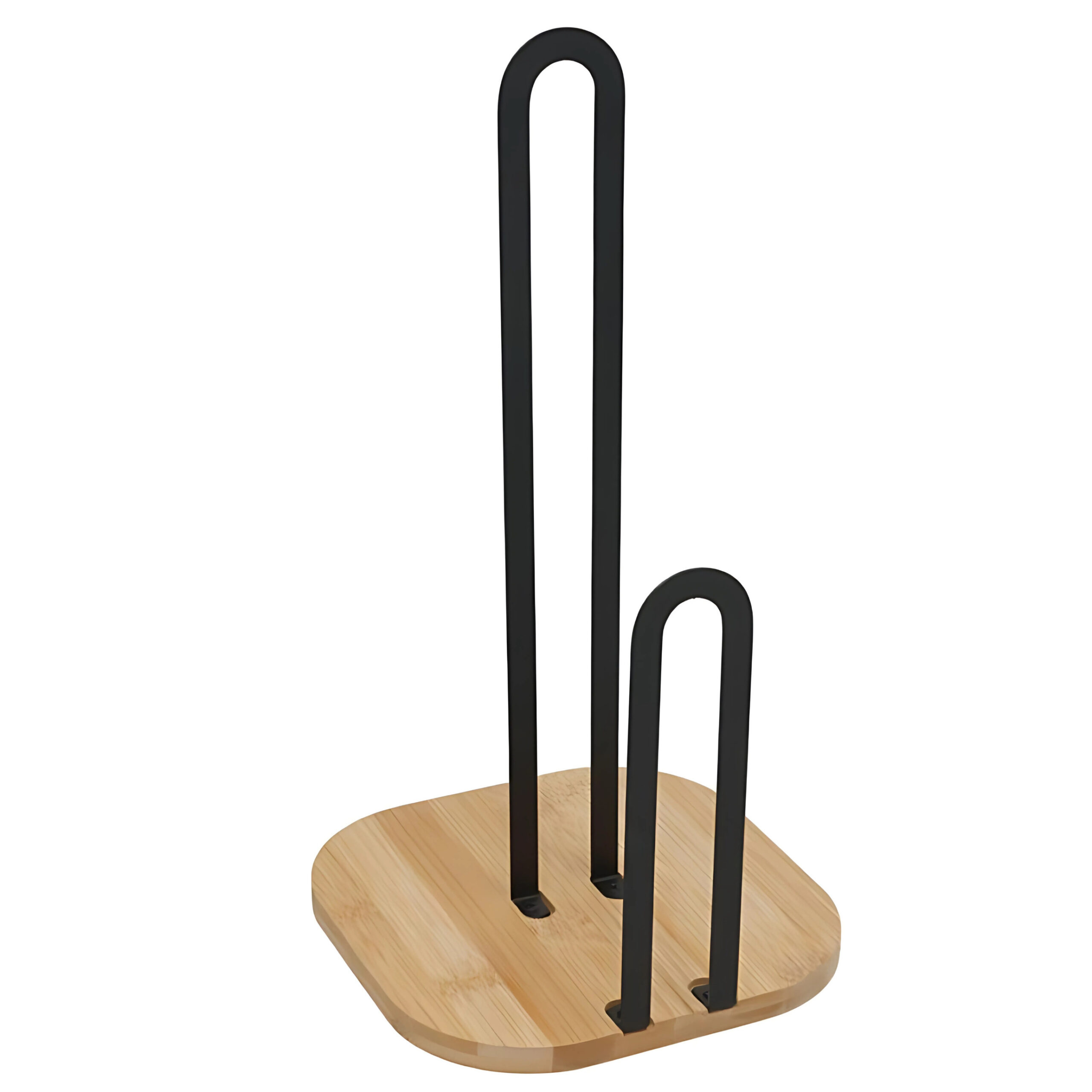 Keukenrolhouder van Gerimport. Deze stijlvolle keukenrolhouder combineert een natuurlijke houten basis met een moderne, zwarte stalen staaf. Het ontwerp is zowel functioneel als decoratief en past moeiteloos in elke keukenstijl, van landelijk tot industrieel. De houten onderkant zorgt voor een stevige, stabiele basis, terwijl de stalen houder ervoor zorgt dat je keukenrol netjes op zijn plek blijft ? klaar voor gebruik wanneer je het nodig hebt.